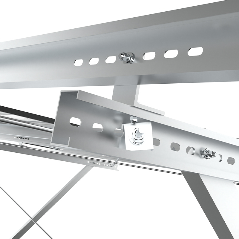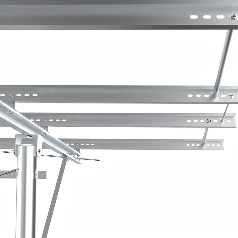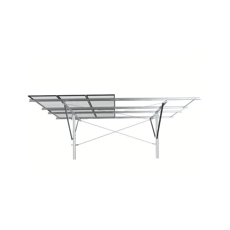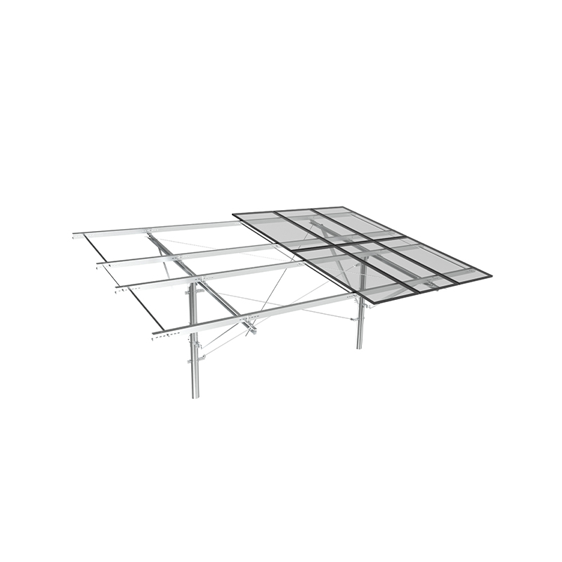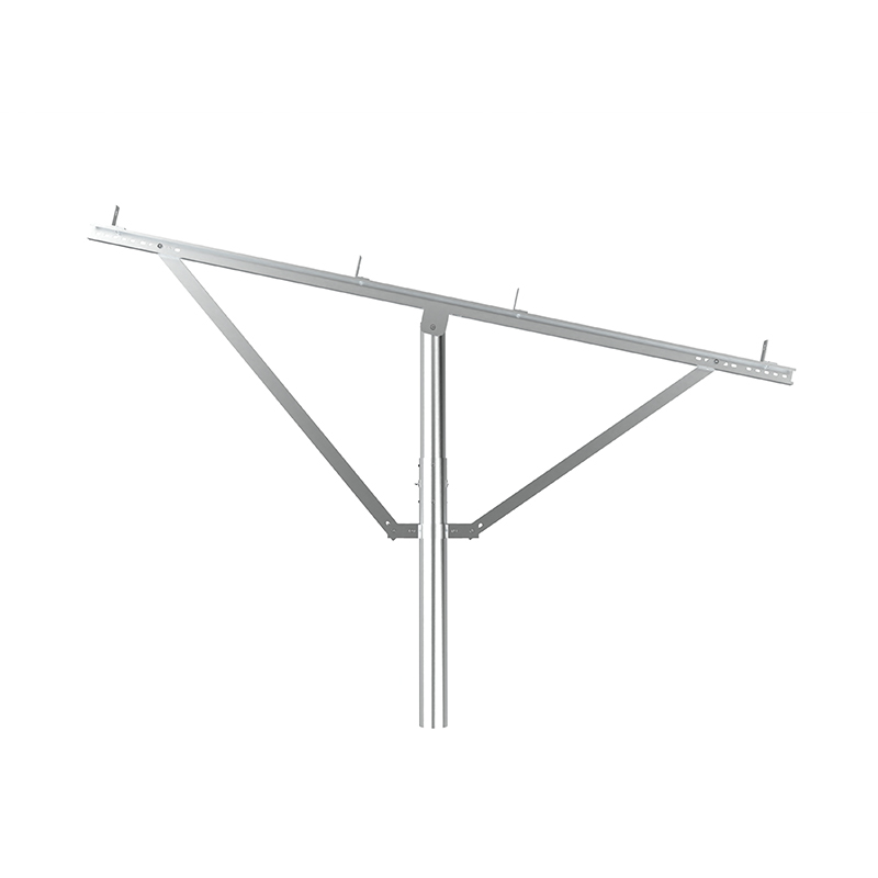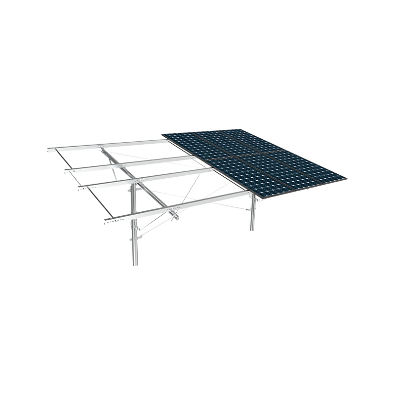A montagem PV de coluna única usa colunas independentes como suporte principal, com uma estrutura simples e materiais econômicos, adequados para inclinações baixas ou terrenos planos. com forte resistência à corrosão, e o reforço da cinta diagonal melhora a capacidade de resistir aos ventos laterais. É adequado para pequenas e médias usinas terrestres ou projetos distribuídos e é econômico e fácil de instalar, especialmente adequado para cenas com luz uniforme e baixa carga do vento.